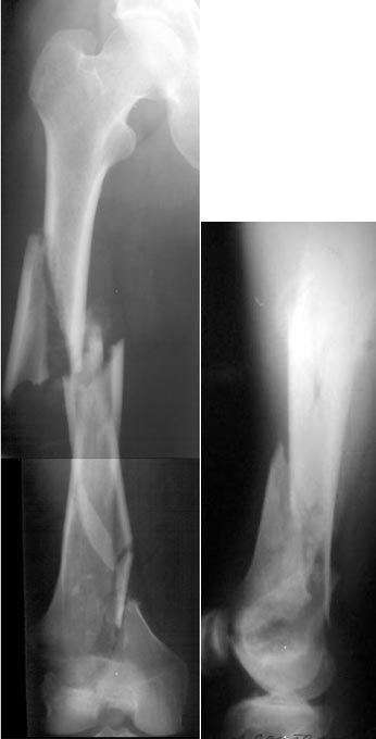 Мужчина 31 г. поступил к нам сегодня из области после автотравмы 1 месяц назад. Основная проблема - тяжелый перелом бедра (см. снимок).