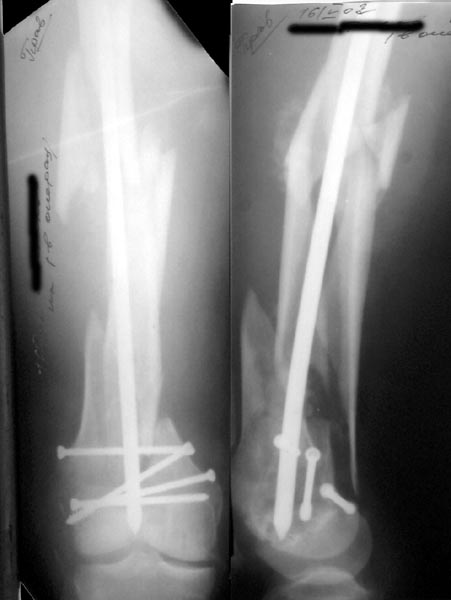 Мы пошли на операцию с планом попытаться сделать закрытый интрамедулярный, а не получится - сделать аппаратом. Посчитали, что получилось, хотя на еженедельной конференции ожидаются некоторые проблемы с объяснениями ;-)