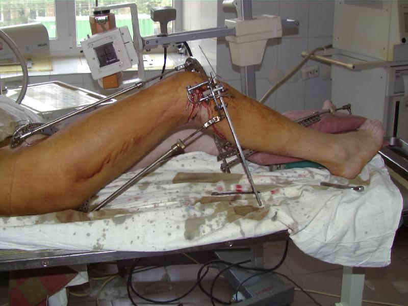 В случае лечения аппаратом, учитывая срок после травмы, можно, наверно, было колено и не фиксировать. Аппаратом мы здесь все равно