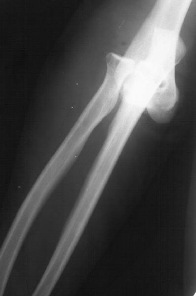 из Пациентка 48 лет при падении с 5 этажа получила травму 28.04.02. Среди прочих повреждений был открытый задний вывих предплечья (см. снимок). Он был сразу вправлен, рана 6 см по внутренней поверхности области локтевого сустава была обработана по месту первичного поступления. К нам поступила 7.05.02. Рана зажила первичным натяжением. Вчера, то есть через три недели после вправления, сняли повязку для разработки движений. Выявлено, что предплечье легко смещается медиально, и вправляется. Движения в локтевом суставе пока плохие. Свежие снимки и в правильном положении, и в подвывихе прилагаются. Вопрос - что делать? Продлить иммобилизацию гипсом? Идти на ревизию и восстановление внутренней боковой связки? Наложить шарнирный аппарат? Заранее спасибо. -- Best regards, Alexander N. Chelnokov