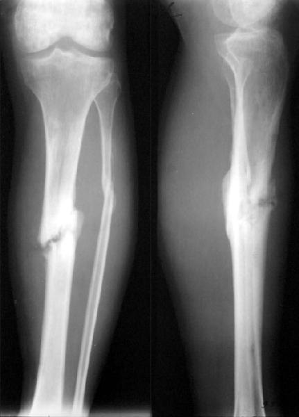 It is a hypertropic non union. IT NEEDS REAMINGG OF THE TIBIA WITH LARGEST REAMEAR AND PUT A LARGEST NAIL NO.11 OR 12 IF AVAILABLE. OSTOTOMY