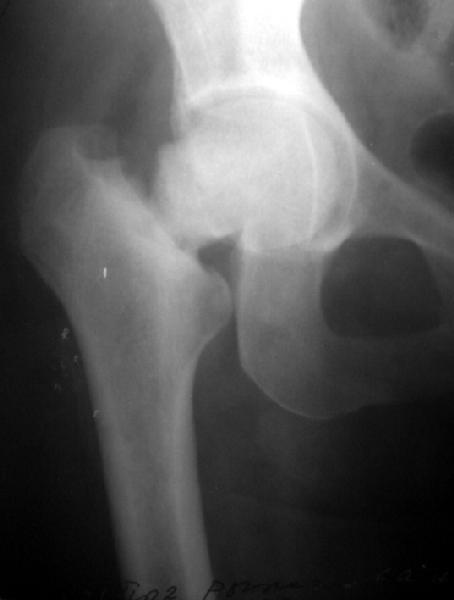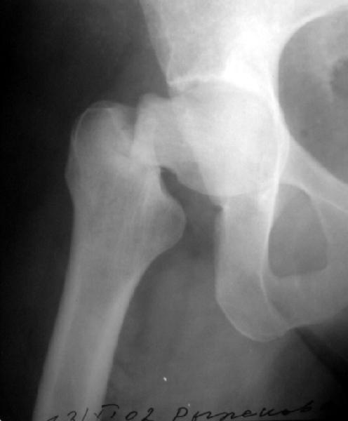 Упала дома 5.11.02. С ее слов, в послдений год лечилась консервативно от якобы коксартроза с этой же стороны. Снимков не делали. Этот сустав болит последние несколько месяцев. На снимках обращает на себя "замыленность" краев. Не усталостный ли это перелом? Дама полноватая. Ограничения амплитуды движений до травмы она не отмечала. Мнения о тактике у нас разошлись в диапазоне от остеосинтеза винтами до эндопротезирования, с остеотомиями между ними. Помогите, пожалуйста, обосновать выбор.