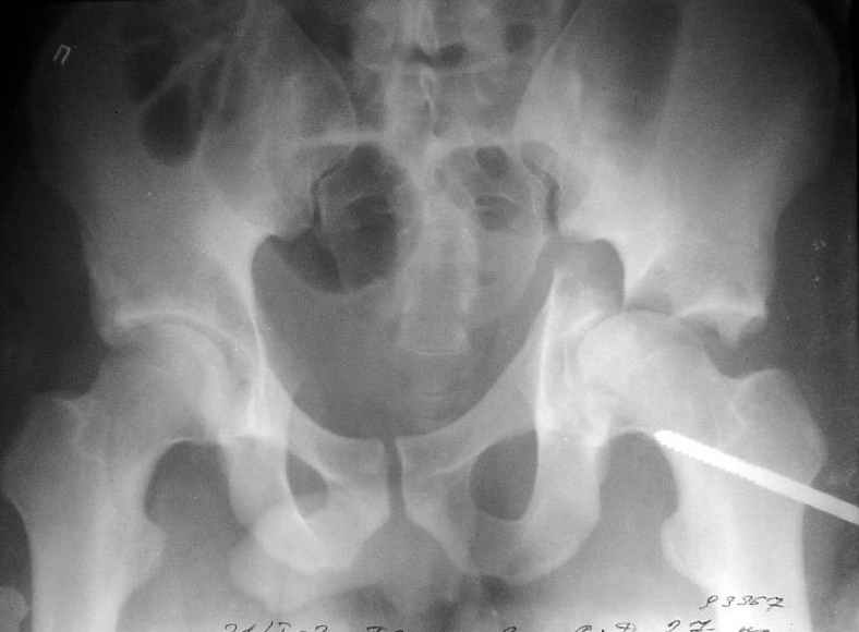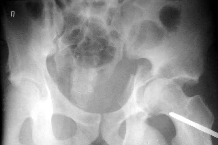 Пациент переведен в нашу клинику на 5 день после множественной травмы 25.01.2003 - двустороннее повреждение вертлужных впадин, разрыв левого