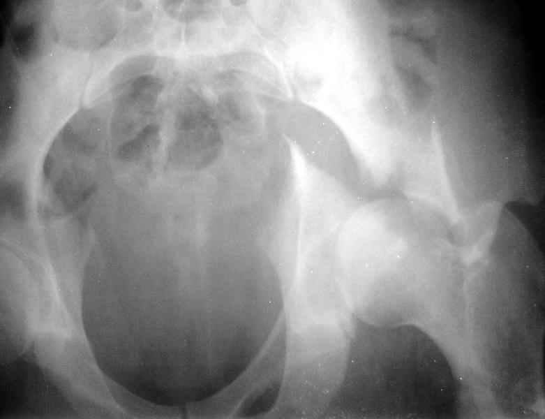 Травма 17 ноября 2002 г., поступил к нам 1 декабря, оперирован 8-го - открытая репозиция, остеосинтез пластинками и винтами. Учитывая повреждение переднего полукольца справа, и крестца и крестцово-подвздошного сочленения слева, наложили аппарат на 2 месяца.