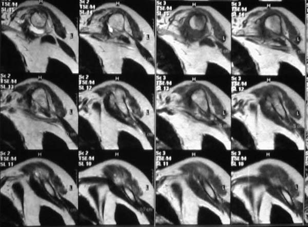 Активное отведение 80 гр., при пальпации - головка плечевой кости безболезненно вправляется и тут же самостоятельно вывихивается. Наложена косыночная иммобилизация, рентгенография (r3) и МРТ. В нашем диагностическом центре МРТ исследование плечевого сустава выполнено впервые, опыта у нас маловато :(. Вопросы: уточнение диагноза? какие исследования провести? тактика лечения? Заранее благодарен! С уважением, А.В.Владзимирский Донецкий НИИ травматологии и ортопедии