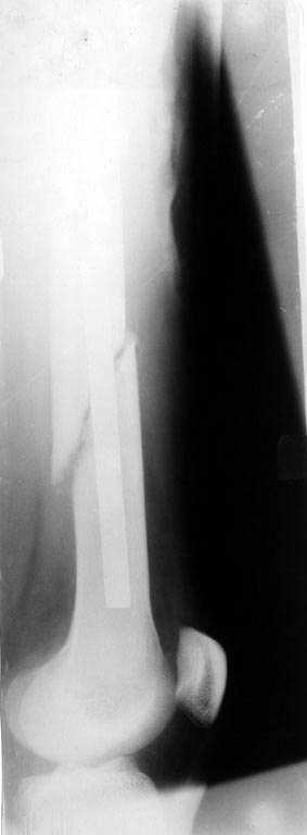 Что-то уж больно похоже, что все-таки после открытой репозиции промежуточный отломок на верхнем переломе был привязан к своему ложу...