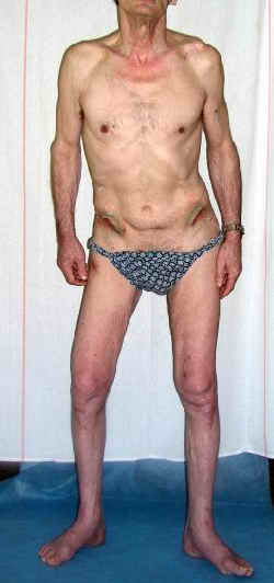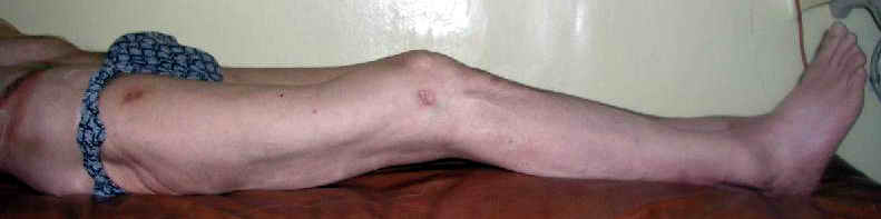 множественные переломы ребер с ушибом легких и гемопневмотораксом, ротационно нестабильное повреждение таза: перелом боковых масс крестца, разрыв лонного сочленения, оскольчатый поперечный юкстатектальный перелом левой вертлужной впадины с центральным вывихом бедра и сегментарным переломом головки, перелом крыла правой подвздошной кости. Открытый многооскольчатый перелом костей правого предплечья, перелом правого бедра в нижней трети, перелом надколенника слева, перелом лодыжек левой голени с переломом заднего края левой большеберцовой кости подвывмхом стопы. Бедро срослось на вытяжении, лодыжки в гипсе, предплечье в аппарате. Под наше наблюдение попал 25.03.03. Выполнен чрескостный остеосинтез таза, с постепенной коррекцией положения отломков, затем 28.04.03 реконструкция вертлужной впадины для эндопротеза, синтез лонного сочленения. В настоящее время ходит с костылями, беспокоят боли в левом тазобедренном суставе, прогрессирует деформация головки. То есть в ближайших планах - эндопротезирование этого сустава. Однако смущает ряд моментов: В частности, на стороне предполагаемого эндопротезирования (левой) имеется разрыв собственной связки ниже надколенника, который подпаян к бедру (видно на фото сидя), то есть активного разгибания голени нет. А на правой стороне имеется штыкообразная деформация бедра, нет полного разгибания коленного сустава, хотя конечность опороспособна; ортопедическое укорочение 3 см. Вопросы: Что делать с левым надколенником и 4-главой мышцей? Восстанавливать ли ось и длину правого бедра? Если не трогать правое бедро, то на сколько компенсировать укорочение при эндопротезировании?