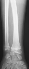 Мой же вариант (ничем, кроме здравого смысла, не обоснованный) - восстановить взаимоотношения в дистальном луче-локтевом сочленении и сделать эпифизиодез дистального отдела локтевой кости П-образной скобой. Недостатки - потеряется один уровень зон роста, что приведет к укорочению, но ведь остальные зоны роста останутся, так что укорочение не должно быть "вопиющим". Ну и плюсы - не надо повторых операций, не будет лишнего "жамканья" луче-локтевого сочленения, не надо будет беспокоиться о косорукостях...
