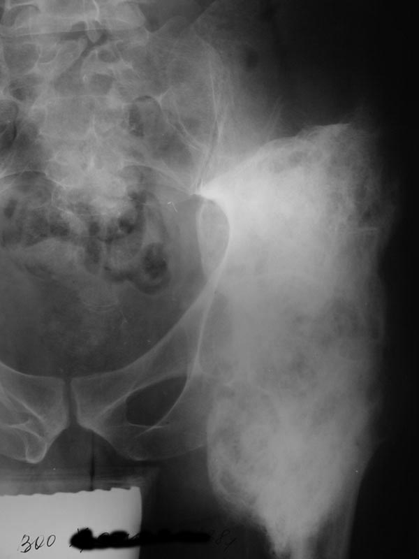 Мужчина 38 лет, Х.В.Н., диагноз: Закрытый травматический компрессионно-оскольчатый перелом L1 позвонка, вывих Тh 12, ушиб, сдавление спинного мозга, нижняя параплегия, нарушение функции тазовых органов. Операция 01.07.03: ламинэктомия Th 12-L1, задний спондилодез проволокой с протакрилом. 06.11.03 -- удаление протакрила, ламинэктомия Th 12-L1, декомпрессия спинного мозга, менингомиелолиз. У больного, как проявление нейродистрофического синдрома, сформировались грубые оссификаты вокруг обоих тазобедренных суставов с резким ограничением движений. 14.01.04 – операция иссечения переднебоковых оссификатов правого тазобедренного сустава. На операции достигнуто сгибание около 85 град. В послеоперационном периоде потеря коррекции значительна (более 50%). На сегодняшний день: Больной лежит, движения в тазобедренных суставах отсутствуют. По передней поверхности обоих суставов пальпируются плотные опухолевидные образования 6 х 8 см. На R-граммах: обширные оссификаты по передней и боковой поверхности т/бедренных суставов (см. приложенные файлы). Планируется оперативное лечение: иссечение оссификатов. Больного необходимо посадить в кресло-каталку для дальнейшей реабилитации. У кого есть предложения? Направление пациента на лечение согласовано с Министерством здравоохранения Хабаровского края, финансирование обещано. Лечащий врач Е.В.Квитченко