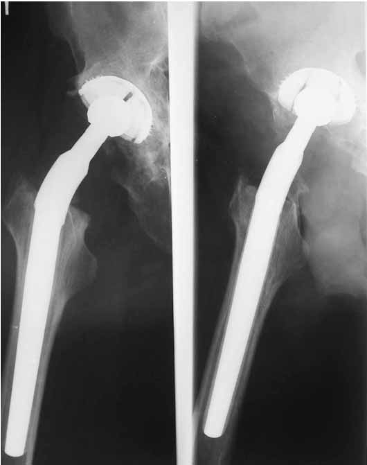 Обзорная рентгенограмма таза просто необходима. Удивительно, почему она не сделана сразу же после установки протеза.