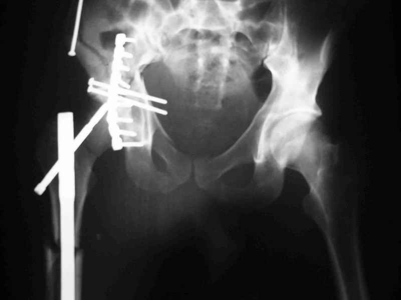 шейку (благо перелом шейки 2 типа -относительно стабильный) затем фрагмент крыла подвздошной кости Lag screw, далее пластина на заднюю колонну и винты в переднюю колонну.(с размерами и направлением винтов ошибка вышла:-((, но интраоперационно у меня была полная уверенность , что винты *ушли* в лонную кость).