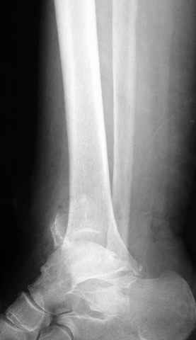 конец малоберцевой кости, к нему прикрепляется латеральный суставной фрагмент дистального эпиметафиза большеберцовой кости (как на снимке)