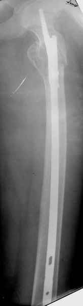 (восстановление шеечно-диафизарного угла, кюрретаж полости с гистологическим исследованием материала, секвестрэктомия, повторная костная пластика и ранняя мобилизация тазобедренного сустава) судя по толщине кортикального слоя, двигательная активность у барышни и до перелома оставляла желать лучшего, поэтому ранняя нагрузка на ногу будет способствовать сращению перелома. Сложно советовать о методе фиксации - что Вы используете рутинно для фиксации подвертельных переломов -этим и следует воспользоваться.