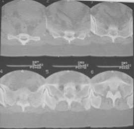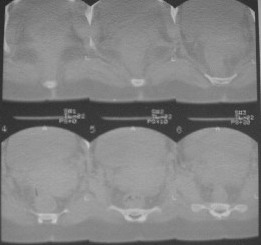 Из анамнеза: в ноябре 2002г. оступилась,упалана трап самолета (на верхней площадке, сразу при выходе из салона) на правый тазобедренный сустав, а затем - вниз на землю на ноги и ягодицы. Потеряла сознание от боли. Доставлена в больницу по месту жительства, лечилась консервативно с диагнозом кокцигодиния.На рентгенограмме от 27.11.02г. вывиха копчика не определяется (снимок идентичен представленной R-грамме от28.11.03г., кроме этого есть нормальная R-грамма копчика в боковой проекции).Через три недели стала ходить, но привести правую ногу в тазобедренном суставе не могла. Сейчас ходит отведя кнаружи правое бедро и голень, как ножку циркуля (фото 1). Неврологических нарушений нет. По просьбе врачаможет на 30-40 секунд поставить ноги вместе (фото 2). При этом испытывает сильную тянущую боль и ощущение "вывернутости" в правом тазобедренном суставе. Эти ощущения заставляют вновь отвести бедро. В положении лежа разогнуть бедро полностью не может из-за болей в ягодичной мышце (фото 3). Сгибание также ограничено из-за болей (фото 4). Отведение в положении лежа возможно в том же объеме, что и стоя (фото 5). Заподозрен старый разрыв правого крестцово-подвздошного сочленения.Выполнено R-исследование и КТ(в приложении). По-поводу деформации лонного сочленения выяснен гинекологический анамнез. Роды одни, нормальные в 22 года. Из роддома выписана на 8 сутки, нарушения походки не было, R-графия таза не проводилась. Вопросы на обсуждение: 1. Диагноз либо алгоритм дальнейшего обследования. 2. Лечебная тактика (в первую очередь возможность и целесообразность оперативного лечения).
