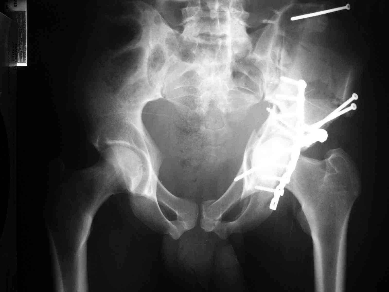 Лонную кость можно не трогать. Постельный режим 5-7 дней, костыли без нагрузки до 3-4 месяцев. При правильном синтезе прогноз благоприятный.