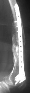 The presented case is a turn to the previous discussion initiated by Zsolt Balogh. In your case antegrade nailing to me woud have been best choice and since the joint was not involved immediate full weight-bearing would have been allowed. Why the locked plate was superior for you?