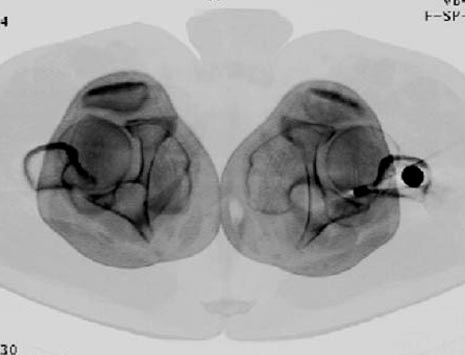 Из истории болезни: два года назад проперирован по поводу 3А открытого перелома бедра, травма на работе в результате "стена упала на него".Сопутствующая травма: Закрытая травма черепа, перелом голеностопного сустава (прооперериван) и перелом плеча (консервативное лечение)