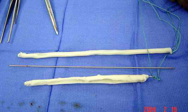 По контуру удаленного гвоздя, т.е. соблюдением кривизны из 3.2 мм длинной спицы-направителя делаем внутренную арматуру гвоздя с кольцом или изгибом в концах для облегчения последующего удаления, потом спица помешается в трубку 10 мм в диаметре от Chest tube, приготовленный антибиотик с цементом заливается в трубку с одного конца, после затвердения цемента трубка срезается и