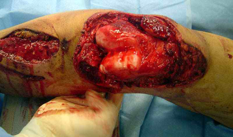 Дистальная пульсация прощупывается, провели ABI (ankle brachial index) 0.92 до репозиции, 1.00 после репозиции CT chest,spine, brain and abdomen. Заключительный диагноз: Открытый вывих коленного сустава, перелом надколенника, разрыв собственной связки надколенника На операции: Irrigation&Debridment около 10 литров раствора, по два стержня в сегменте, фиксация диагонального, с дефектом, перелома надколенника тремя cannulated 4мм шурупами, ушивание поперечного разрыва связки 5.0 Ethibon sutures, разрыв находился на 2 см ниже надколенника (срез чем-то острым), повторная ирригация раны, взятие посева на аэробическую и анэробическую культуру, окончательная фиксация стержней наружного фиксатора 50см Carbon Fiber Bars, вакуумное закрытие. Мониторинг показал, что компартмент синдрома нет. Через два дня повторение Irrigation&Debridment, в зависимости от состояния раны планируется закрытие раны. С уважением Джолдас Кульджанов