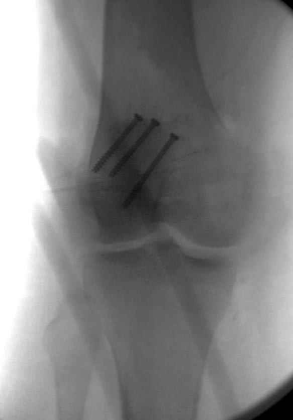 Внешний фиксатор держим около 6 недель, поэтому был выбран метод фиксации шурупами и еще линия перелома была диагональной, не было нужды в tension band technique, cannulated screws удобнее, провел спицы и по ним шурупы.