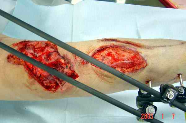 Результат культур из ран - негативные, рану сегодня закрыл, вторая рана была глубже (degloving injury) с обнажением большого участка гребня большеберцовой кости, через пару дней планируется закрытие.