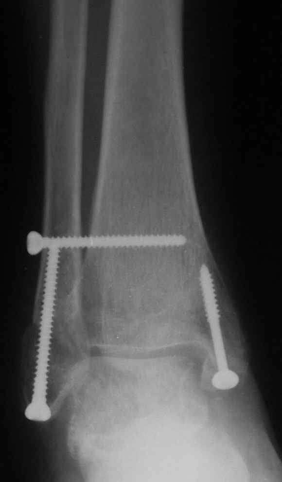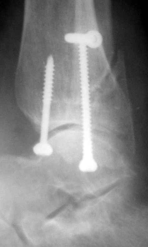 действительно было повреждение синдесмоза - в 4 месяца позиционный винт - не решение. Внутренню лодыжку такую - надо было бы спицами и проволочной петлей. Извините за эти банальности.