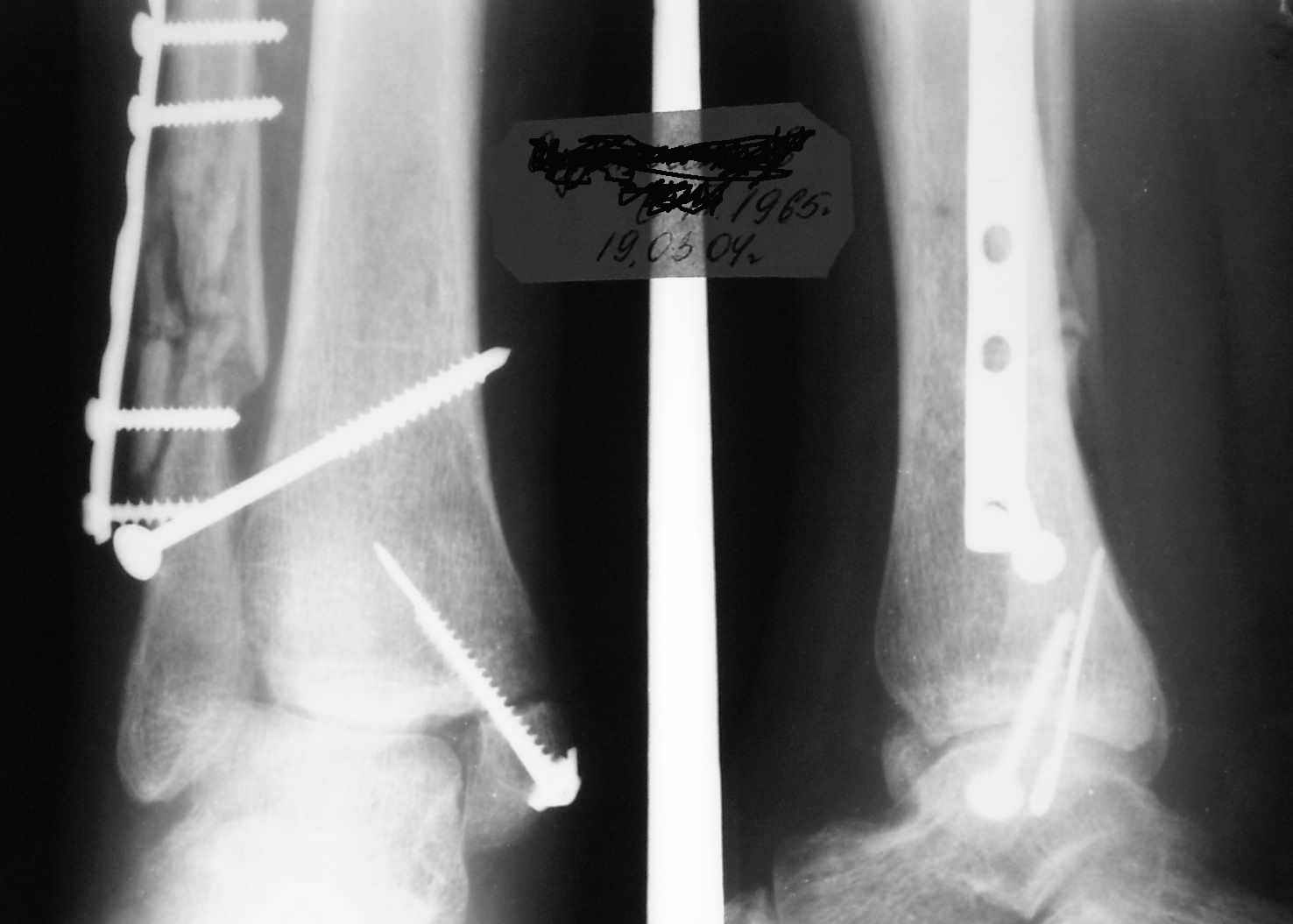 ЮАБ> Рекомендую удаление фиксаторов, остеосинтез малоберцовой кости пластиной с угловой