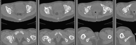 2. ограничить двигательную активность до 6 мес. (не нагружать ногу, носить тазовый корсет-пояс и т.д.) с контролем сращения. Вроде бы на Р-граммах угадывается слабая тень формирующегося костного мостика по l. iliopectinea, это место в представленные срезы КТ не попало. Если к 6 мес. ничего не нарастет, то см. пункт 1.