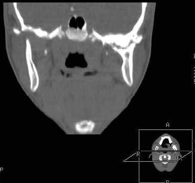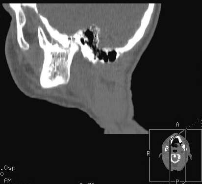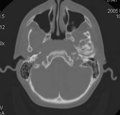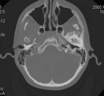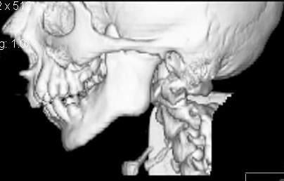 Пациент В., 13 лет. Диагноз: Костный анкилоз левого височно-нижнечелюстного сустава (ВНЧС), левосторонняя микрогения. Болеет с 2-х летнего возраста. Возможная причина развития анкилоза – воспалительный процесс (в первые 1,5 года жизни часто болел простудными заболеваниями, травму родители отрицают). В 3 и 5 лет проводилась редрессация – безуспешно.