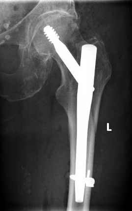 из Поступила пациентка 75 лет с пертрохантерным переломом левой бедренной кости. 15 лет назад перелом справа, который прооперировали тогда гвоздем лециуса.