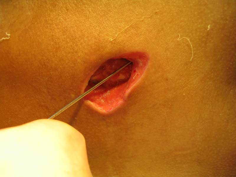 на передней брюшной стенке, крестце и левом плече (см. фото в аттаче). В принципе с ранами