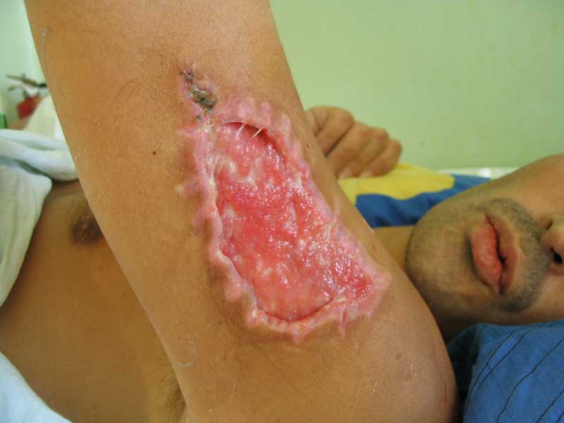 "обработка" раны левого плеча (зачем-то удалили отслоенный мостик кожи... :-/ ). Через