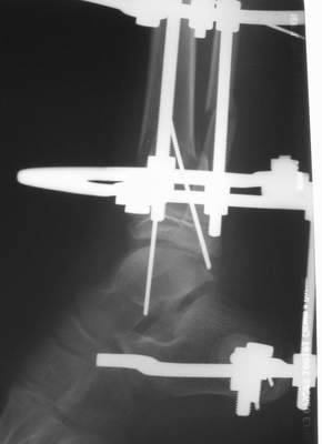 AVM> зафиксировать б/б кость спицами крест-накрест (не обязательно двумя...