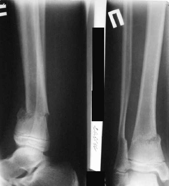 а был у больного перелом дистального метафиза большеберцовой с чисто
