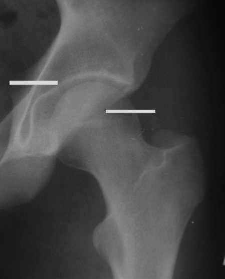 Уважаемые коллеги! Заканчивая обследование больного с переломо-вывихом бедра сделал ему обычные R-томограммы. Кажется удалось "поймать" и отломок и донорское место. Мои выводы - в скиаграмме. Считаю, что это передне-нижний фрагмент головки, образовавшийся вследствии отрывного перелома. На томограммах отломок обозначаю длинной стрелкой, а место откуда он оторвался - более короткой. Учитывая тот факт, что его размеры по КТ 25 х 15 мм считаю, что его фиксация на место необходима для профилактики артроза, что при 16-ти летнем возрасте пациента важно в плане максимального отодвигания эндопротезирования. Планирую оперировать его 24.05.05 г. Результаты представлю.