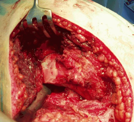 - в приложении схемы этой операции при паралитическом вывихе (a - по Зацепину; б-по Мовшовнчу; в - по Чаклину.). Источник - "Оперативная ортопедия", И.А. Мовшович, 1993г. Сам, в данном случае, считаю это опасным, т.к. без вывихивания вмешательство не осуществить, а повторный вывих и рассверливание чревато не только травматизацией хряща в нагружаемой зоне, но и ухудшением кровоснабжения головки. На операции, кстати, кровотечение из дефекта было весьма интенсивным.