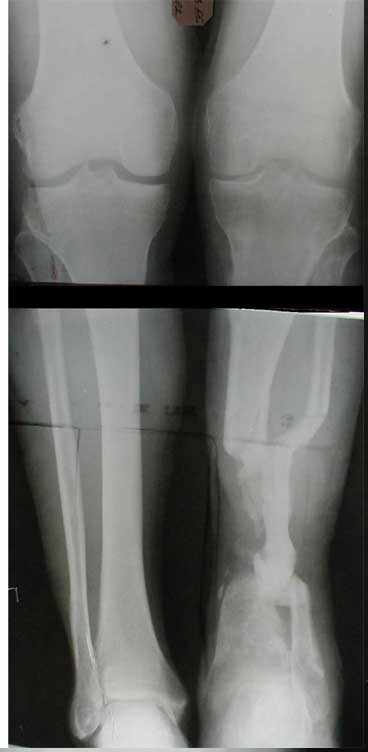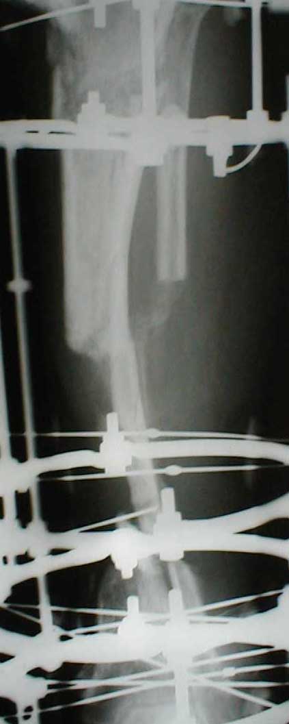 - замещение малоберцовой костью в аппарате (спицами с упорными
