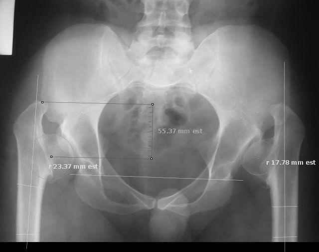 Dear All,This 27 year old presented to a colleague, about 2 years back, with complaints of bilateral hip pain. He was treated symptomatically, but now has increasing pain, and walking distance is being limited. On examination, he has got a lordotic gait, Trendelenberg negative, bilaterally, hip movements fairly good, with no FFD.X-rays are attached.Kindly give your opinions regarding management and future prognosis.Thanks and regardsMuhammad Amin Chinoy FRCS