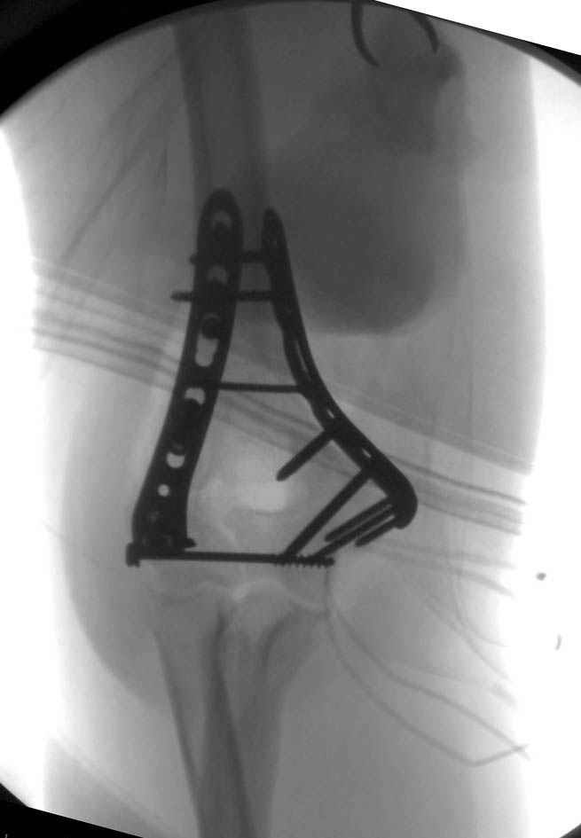 аппарат вряд ли самый практичный вариант окончательной фиксации. Надо бы две пластиночки - по медиальной и задне-латеральной поврехностям...