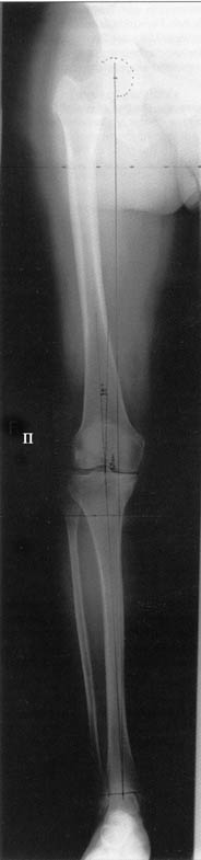 Хотя любого больного она не в меньшей степени интересовала. При всех видах остеотомий обязательным требованием являлась восстановление баланса пассивных и динамических сил путем восстановления оси конечности, стабильности связочного аппарата и контроля над мышечной активностью при осевой нагрузке. Как правило, учитывалась сохранность гиалинового хряща на компенсирующем нагрузку мыщелке бедра или большеберцовой кости. Предоперационное планирование осуществляли с поднагрузочных рентгенограмм обоих конечностей.
