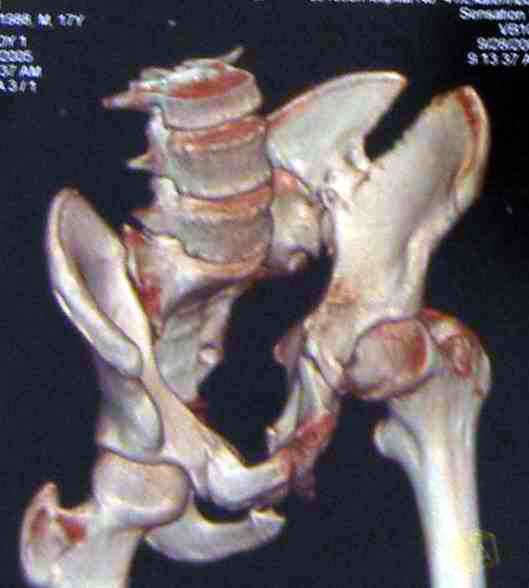 Коллеги, помогите определиться с тактикой лечения пациента. Ув. коллеги, к нам поступил молодой человек 17 лет. Травма в июле 2005- ДТП, т.е. 3 мес назад. Лечился консервативно в "гамаке" 1,5 мес., затем ходьба с костылями без опоры на левую нижнюю конечность, начал на нее опираться 1 нед назад. В настоящее время имеется укорочение порядка 4-5 см, выраженная хромота, передвигается с одним костылем. Кроме того беспокоят боли в пояснично-крестцовой области при ходьбе, неудобство при сидении, невозможность лежать на спине "на жестком", а также на левом боку (субъект худощавый, боль в области крыла) хромота, длительное пребывание на ногах невозможно. На функциональных снимках большой подвижности нет (не привожу из-за плохого качества). Учитывя наличие участков сращений, помогите опредилиться с тактикой. Наш план пока такой: 1. выполнить остеотомии в участках сращений 2.постепенно аппаратом низвести смещенную половину таза. 3.выполнить внутренний остеосинтез передних и задних отделов. Будем признательны за ваш взгляд на тактику леченияэтого больного, а так же на такие проблемы как: места остеотомий, возможные варианты компоновки аппарата, выбор имплантатов для последующего вмешательства.
