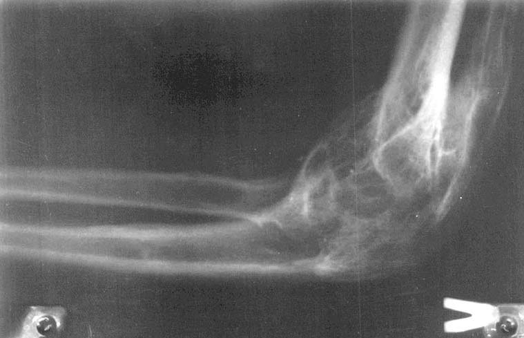 Из одного из городов нашей области к нам обратились родственники пациентки с вопросом о возможности оперативного вмешательства на локтевых суставах.К сожалени, мы ничего предложить не смогли. Ваше мнение? Каким может быть дальнейшее (оперативное, консервативное) лечение? Заранее благодарю!Женщина, 22 года, инвалид 1-й группы. В анамнезе парезы и плегии из-за разрыва аневризмы головного мозга и последующего ишемического спазма сосудов головного мозга при повторной операции. Дз: остаточные явления обширной двусторонней ишемии мозга вследствие оперативного вмешательства по поводу аневризмы ПСМА (2001 г.), нижний глубокий спастический парапарез, нейрогенные дисфункции тазовых органов, контрактуры локтевых, коленных и голеностопных суставов.КТ головного мозга: кистозно-атрофические изменения в обеих лобных долях (без динамики с 2002 г.), постинсультная киста в области колена внутренней капсулы базальных ядер справа, гипотрофические изменения в полушариях большого мозга. С уважением, А.В.Владзимирский Донецкий НИИ травматологии и ортопедии