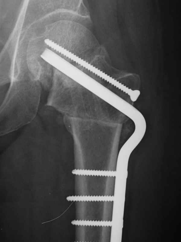 > Dynamic hip screw with abduction osteotomy with an additional cancellous
