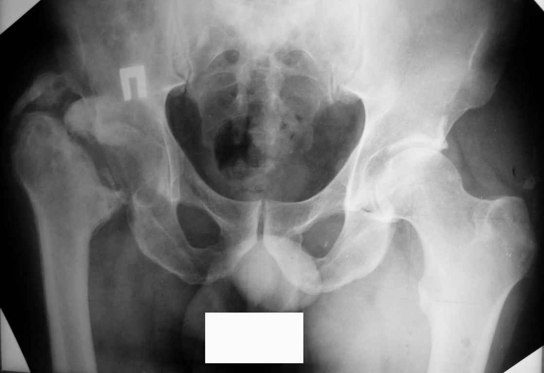 Уважаемые коллеги, прошу высказать ваши мнения по представленному случаю. Пациент - мужчина около 50лет после перенесенной год назад тяжёлой сочетанной травмы. Был оперирован, среди прочего - остеосинтез DHS-фиксатором чреcшеечного перелома правого бедра, DCS-фиксатором остеосинтез оскольчатого чрезмыщелкового перелома левого бедра. Однако, в связи с развитием гнойного коксита были вынуждены убрать DHS-фиксатор и головку. Гнойный свищ правого тазобедренного сустава закрылся сразу после операции. Из-за вторичного смещения и поломки винтов пришлось удалить DCS-фиксатор и сращивать левое бедро внешней иммобилизацией. Прошло чуть более года. Пациент ходит с опорой на обе ноги,пользуется палочкой. Справа относительное укорочение 3см. Слева варус 33гр., тугой ложный сустав н/3бедра. Движения в коленных суставах почти в полном объёме.Перед нами встали вопросы, с чего начать? Протезирование правого ТБС? Восстановление опорности левой конечности? Воспользоваться-ли для этого интрамдулярным остеосинтезом гвоздём с блокированием с ретроградным введением? Стараться при этом восстановить полностью длину, или оставить на потом, на аппаратное решение? Или сразу попытаться использовать аппарат Илизарова? Но боимся потерять колено? Вопросов много.С благодарностью выслушаем все мнения.Заранее спасибоРахматуллин Ринат НургаяновичГКБ N 13 г.Уфа.