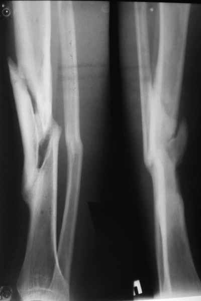 Очевидно, что перед врачом в подобной ситуации стоят две основные задачи: 1) устранить деформацию и укорочение; 2) срастить кость.