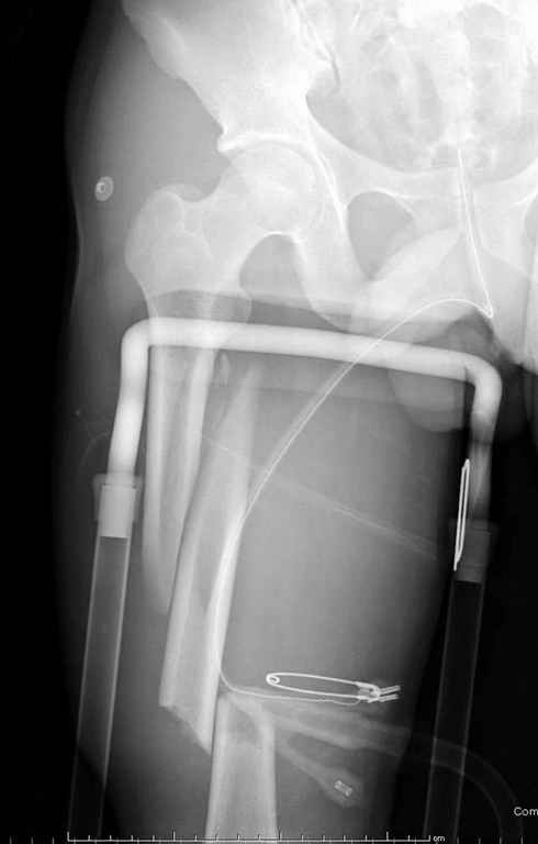 Здесь слайды случая больного с политравмой, включающей сегментарный перелом бедра и повреждение таза с нарушением тазового кольца, разрыв симфиза и перелома крестца зон 2 и 3.