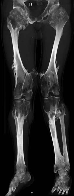 из Уважаемый форум, Oбратился больной 30 лет с хондродисплазией, множественными деформациями и экзостозами. Сгибательно-приводящие контрактуры Т/Б сустав, поясничный лордоз.