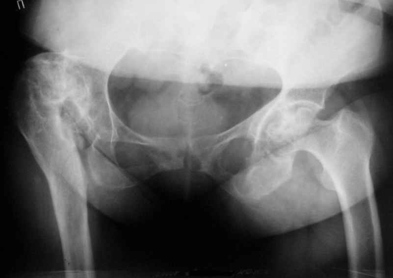 С отведением у пациентки проблемы - 0 град., приведение до 30 град, сгибание/разгибание=140/150 град., внутр. ротация 0 град., наружная ротация 20 град. Относительное и ортопедическое укорочение правой нижней конечности всего 1 см.(в 1980г. удлинение правого бедра на 4 см.). Имеются признаки остеохондроза дисков поясничного отдела позвоночника.