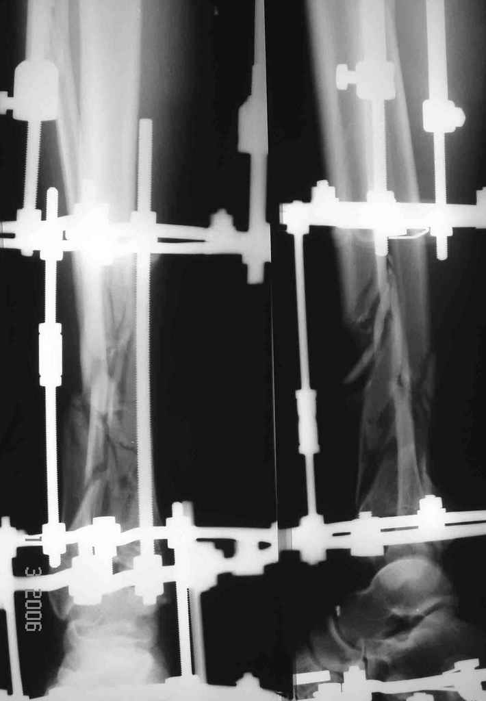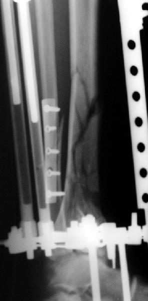 внешним фиксатором после безуспешных попыток лечения пластинами с