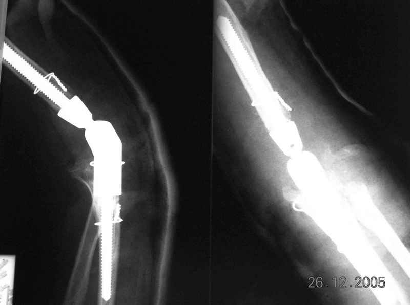 Эндосервис т/ф (095) 221-06-18, 500-41-30, 513-54-32 ) можно заказать протез этого типа по индивидуальным размерам для восполнения дефицита длины плечевой кости. Сейчас есть и более дорогие коммерческие эндопротезы фирмы Stryker. Наиболее активно оперируют локоть в ЦИТО, у нас тоже есть